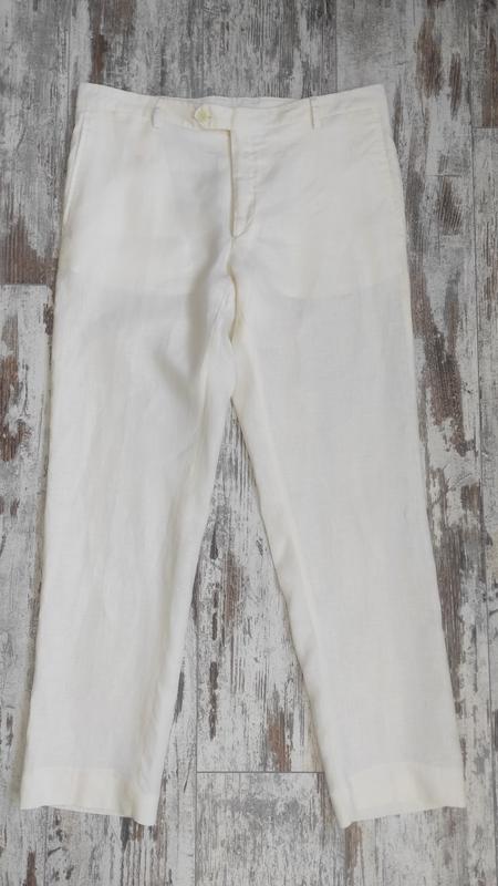 Стан ідеальний. Якісний тонкий, але щільний льон. Колір - айворі (слонової кістки). По боках та ззаду є кишені. Розмір вказано 50/XL, але це скоріше 48/L. Заміри: довжина - 97 см; НОТ - 44 см; НОС - 54 см; висота посадки спереду/ззаду - 25 см/41 см; ширина холоші зверху - 32 см; ширина холоші внизу - 19 см. Додаткові фото та заміри надам за потреби. Дивіться інші мої оголошення.