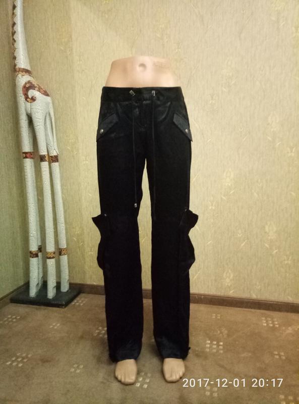 оригинал. ткань типа шелка, хорошо падает по фигуре, блюки свободного стиля и покроя , карманы с заклепками по бокам, талия затягивпается поясом-шнурком, можно регулировать. Внизу манжет так же с застежкой благодаря чему манжет можно распускать или сужать.