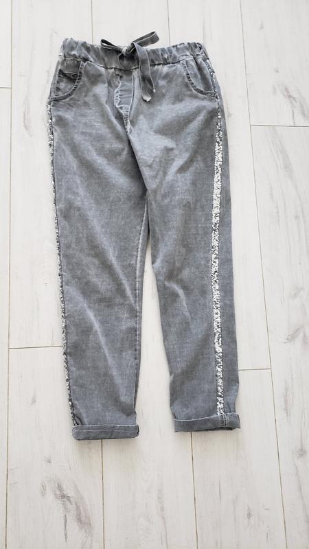 очень классные коттоновые брюки, по бокам оригинально украшены