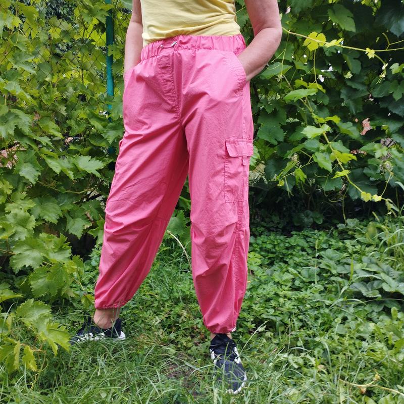 Стильные трендовые брюки-парашуты Next. Тонкі, але щільні. 100%-бавовна. Стан идеален, выглядят как новые. Размер указан М. Мои замеры: Полуобхват пояса-41 бедер-65 длина по внутреннему шву-71 по боковому-99 ширина штанины сверху -39 по низу -14 Посадка: перед -36 зад-38 см.