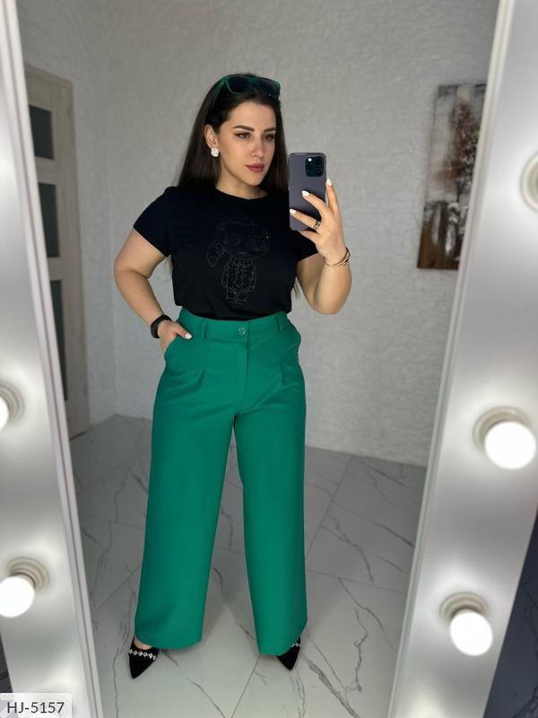 Брюки HJ-5147 Размеры: 46, 48, 50, 52, 54, 56 Цвета: лиловый, трава, черный, фисташка, светлое масло, синий Тканина: крепкостюмка Брюки с высокой посадкой, по бокам карманы, есть шлевки под ремень, застегивается на молнию и пуговицу Параметры модели от82, ос108, рост 165см, на ней одет размер 52.ске3.Не нажимайте на кнопку Купит,технические проблемы подписывайтесь..ждю)