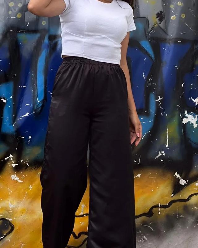 Брюки шелковые, в поясе на резинке, красиво сидят