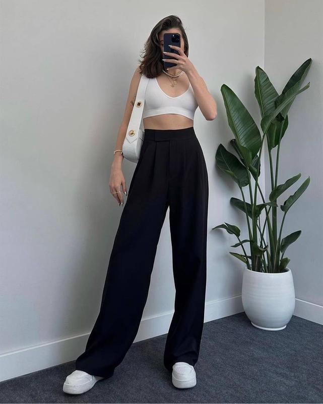 🌿НОВИНКА🌿 💥Наш новенький Хит💥 🚀Уже в наличии в очень большом количестве🚀 Брюки🌿 Размер: 42-44; 44-46 Ткань: Турецкая Костюмка Цвета: Черный, серый, шоколад, св. беж, молоко. 📌Замеры: Длина брюк: 103-105см Брючки клеш, пояс на липучке + молния.
