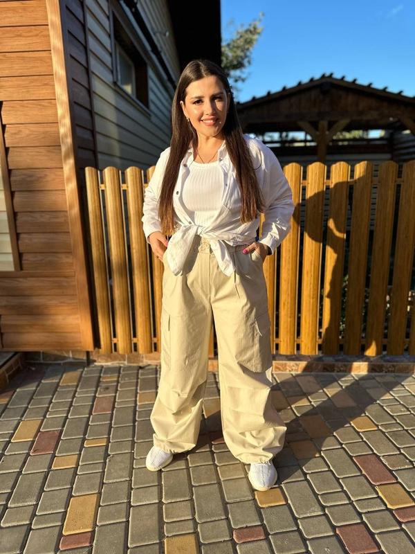 ✨Штани-карго✨ ▫️Модель 002VK ▫️Цена 700 грн ▫️Размеры: 42-44;46-48;50-52;54-56 ▫️Цвета: черный, хаки, беж, белый ▫️Ткань: джинс-коттон очень хорошего качества (не кашлатится, не садится после стирки) ▫️Брюки-карго свободного кроя, талия на широкой резинке, застегивается на пуговицу в тон изделия, с обеих сторон кармана+объемные карманы возле коленей, по низу фиксируется шляпной резинкой ( можно регулировать объем по низу штанки), на коленях горизонтальные складки для объемности штанины. ▫️Параметры модели-норма: ОГ 97, ОТ 70, ОБ 97, рост 170 см, на ней представлен 42-44; параметры модели-балта: ОГ 108, ОТ 85, ОБ 108, рост 165, на ней представлен 50-52 ▫️Параметры по внешнему шву: 42-44: ОТ 74-80, ОБ 100, длина 109, низ штанины 56 46-48: ОТ 78- 86, ОБ 110, длина 109, низ штанины 56 50-52: ОТ 82-92, ОБ 120, длина 110, низ штанины 60 54-56: ОТ 86- 98, ОБ 128, длина 110, низ штанины 60