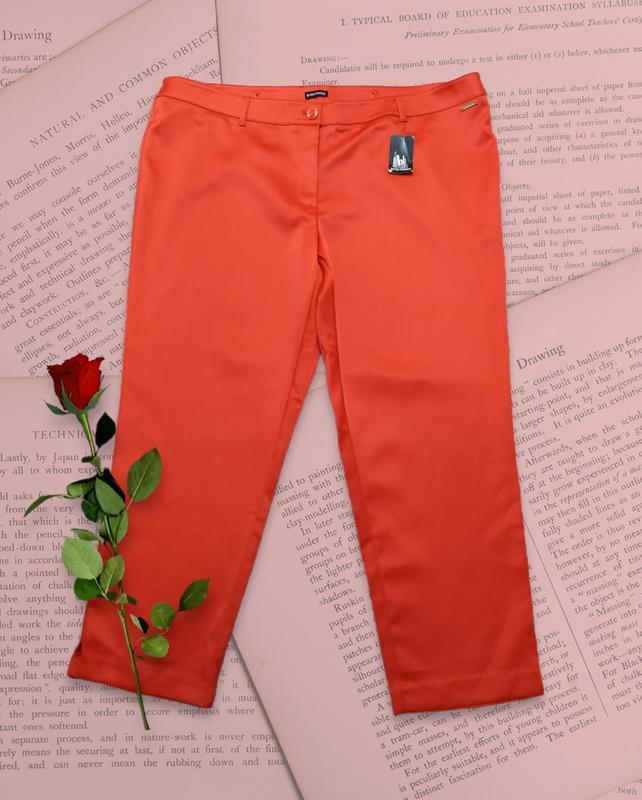 Классные женские брюки из полу плотной стрейчево атласной ткани. Укороченный фасон, евро длина. Невероятно красивый цвет. По низу брючин маленькие разрезы. Новые. Мерки сняты в спокойном состоянии: ПОТ-56 ПОБ-60+ Длина-90 шагова-63 Посадка-27-43 Полуобхват штанини вверх-35+ низ-20