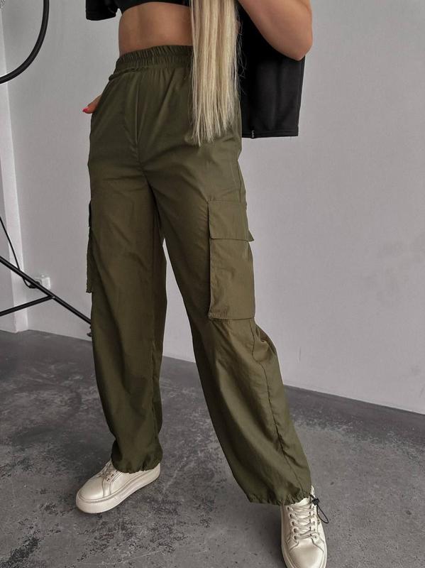В наличии брюки карго с карманами, низ брюк на затяжке. Цена 500 грн ❣ Материал: плащевка Арт#L₽O 10395 Размеры 1 (с-м), 2 (м-л) 1(с-м) Об.ст.100 см. Длина 102 см. 2(м-л) Об.ст.108 см. Длина 104 см.