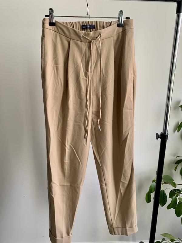 Брюки свободного кроя. Очень качественная ткань. Состояние новых. Размер 34/36. В поясе регулируются шнурком. Цвет теплый беж Актуально до 31.08