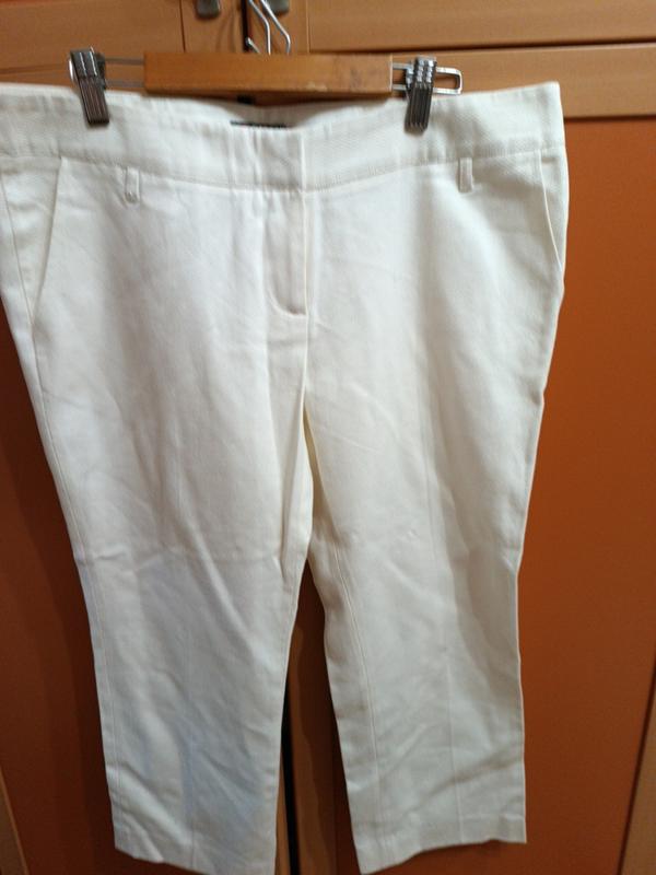 укороченi, новi, розпродаж, под пасик, колiр молочний, розмiр 48, замiри : талiя 44, стегна 50, довжина 80, посадка перед 23, посадка зад 35, пошаговий 57,не тягнуться, котон