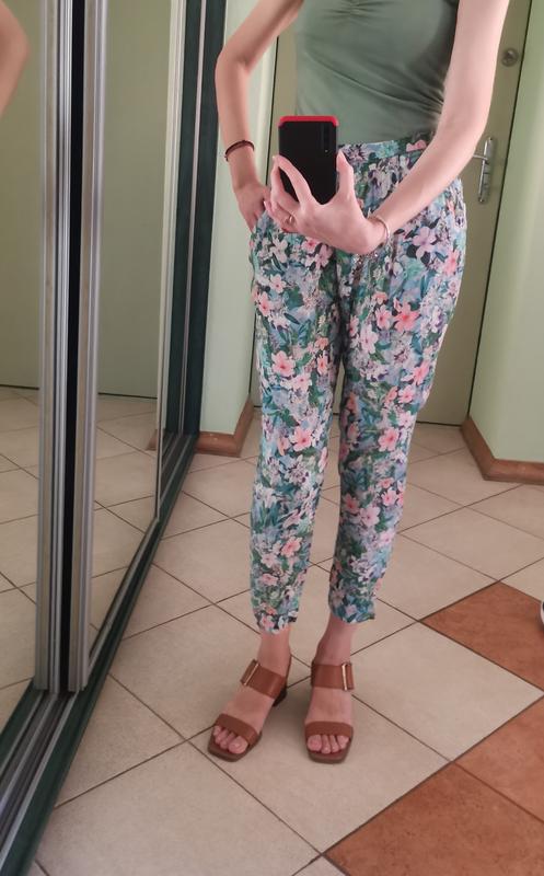 Укороченные брюки из вискозы zara. С боковым замочком, сзади на резинке, хорошо тянутся. Стан идеальный недостатков не имеет, бирка со составом срезана, но это вискоза ПОТ 34-38 см ПОБ 46-48 см Длина по внешнему шву 89 см Длина по внутреннему шву 64 см