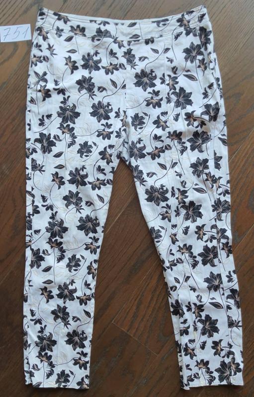 Хлопковые брюки. Есть карманы. Застегиваются на молнию сбоку. Длина 68см, тянется до 72см Длина штанины 95см, тянется до 98см Полуобъем талии 45-46см Полуобъем бедер 53см, тянется до 64см