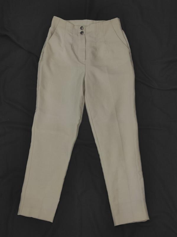 классические брюки цвета слоновой кости которые подойдут на s выглядят очень красиво с ремнем объем талии 35 см, объем бедер 54 см, длина по внешнему шву 95 см, длина по внутреннему шву 65 см если нужны еще замеры и фотографии на теле пишите, все скину