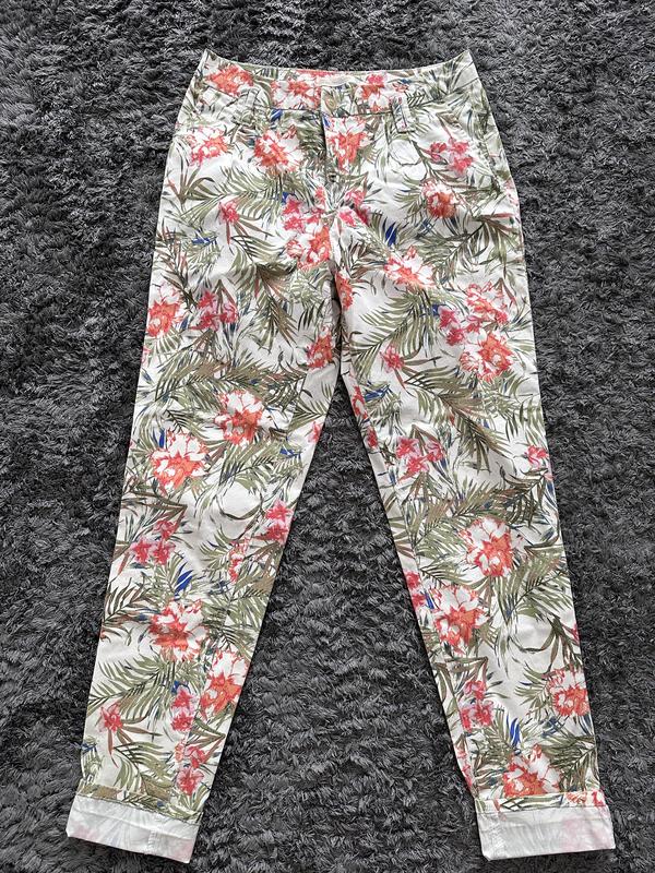 Брюки коттоновые цветочный принт. Идеальное состояние. 34 размер. XS-S