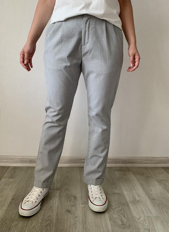 Брюки сірого кольору У складі 23% віскоза, 75% поліестер, 2% еластан Довжина 96 см, напівобхват талії 43 см, напівобхват стегон 55 см Стан ідеал