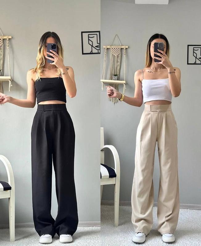 🔥ТОП Продажу🔥 😍 Брюки🌿 Модель: 016 Размер: 42-44; 44-46 Ткань: Турецкая Костюмка Цвета: Черный, серый, шоколад, св. беж, молоко. Цена: 589 грн🏷 Брючки клеш, пояс на липучке + молния.