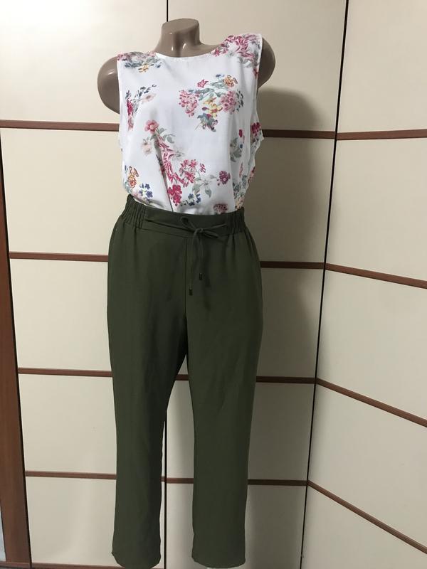 Красиві штани ,розмір L-XL(вказаний 14)довжина 94см,пот 40- 47см(позаду резинка,поб 54см,,стан нової речі,