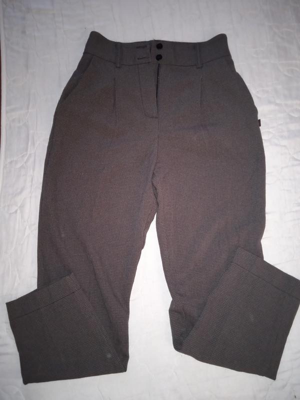 очень красивые женские брюки, высокая посадка, в мелкую клетку. фото не передает, но они крутые. 44р. на наш 27,28р.