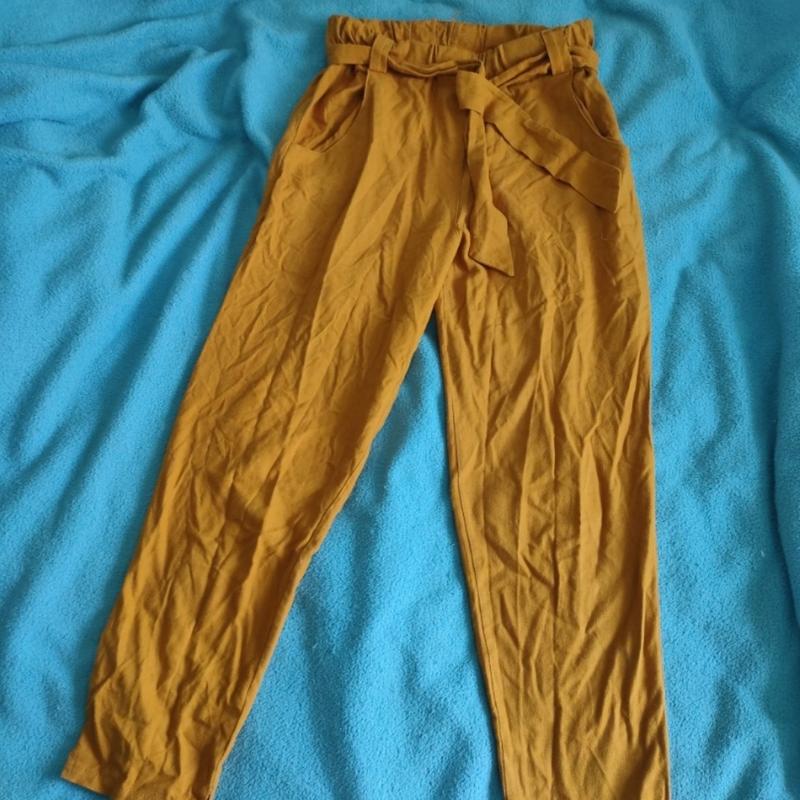 Ткань натуральная.В поясе тянутся, бо там есть резинка.Длина 91см,шаг63см,талия 86см (в растянутом)бедра 95см