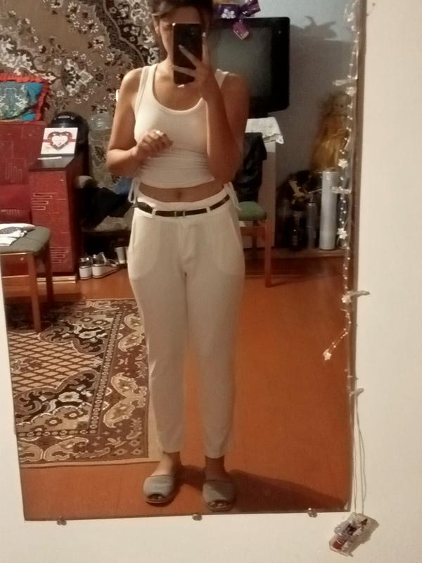 продам белые брюки с ремешком размер 38 одевались только раз являются незаменимые пятнышки на правые ноге не фирменные