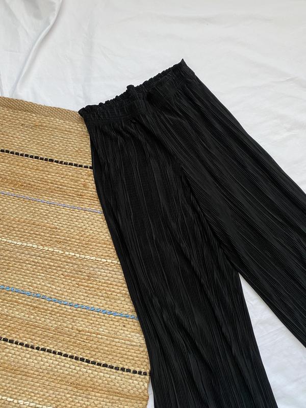 Кюлоти плісе чорного кольору 🖤 Талія на резиночці. Розмір: s,m Довжина: 90 см Талія: 34 см (на резиночці, максимально тягнеться до 60 см) Півобхват стегон: 54 см Півобхват штанини внизу: 31 см