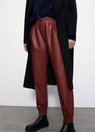 Стильные брюки эко кожа Zara, M - размер. Бордо/красный