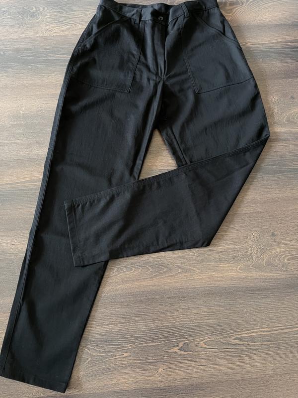 Классные качественные брючки, идеальная посадка. Купились в Испании, бирка с названием бренда срезана. В состояние новой вещи. Размер указан 44. Цвет насыщено черный. Замеры: ПОТ 38 см; ПОБ 57 см; длина по боковому шву 104 см, шаговая - 76 см; ширина штанины в верхней части 33 см, внизу - 16.5 см. Высота посадки: 32/36 см.