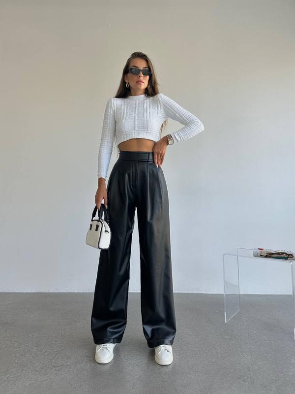 Брюки 🥰 Мод: 856-1021 Ткань: еко-кожа на замше Цвет: чёрный, моко, молоко Размер: 42-44, 46-48 Брюки клёш, пояс на липучке
