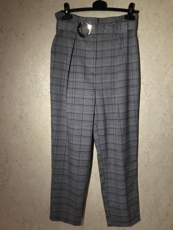 Стильные брюки в сером цвете с завышенной талией размер 38