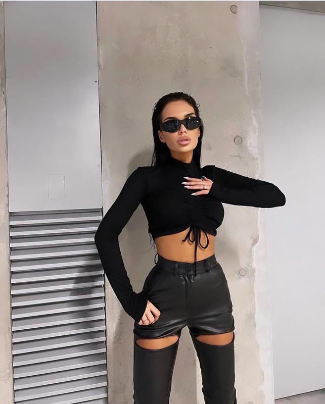 . 🎀 Штани 🌸Ткань - эко кожа 🌸Размеры - 42-44 и 44-46 🌸Цвета - черный Кожаные брюки с идеальной посадкой и вырезами Очень стильные и эффектные