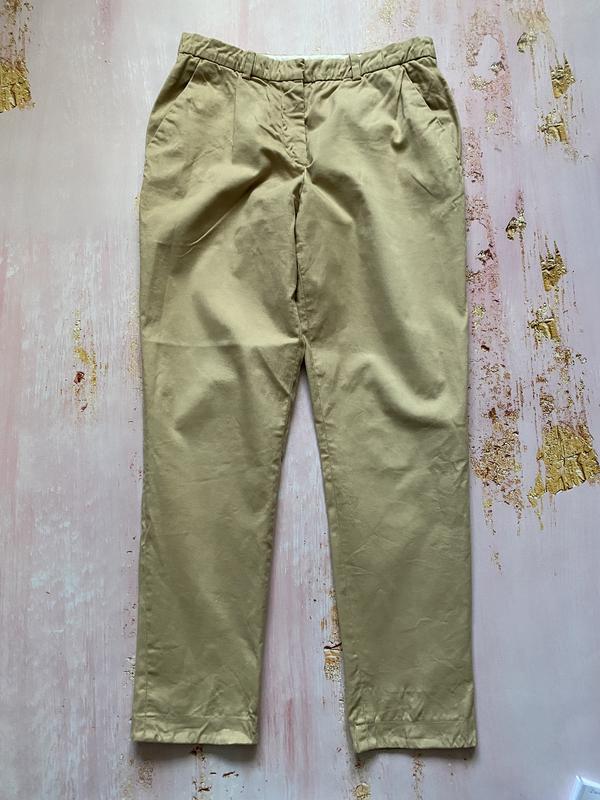 Плотни красивого цвета брюки (цвет на последнем фото). Пояс 37,бедра 51, довж 90, низ штанини 15.Чуть тягнуться . Пошиты очень добротно