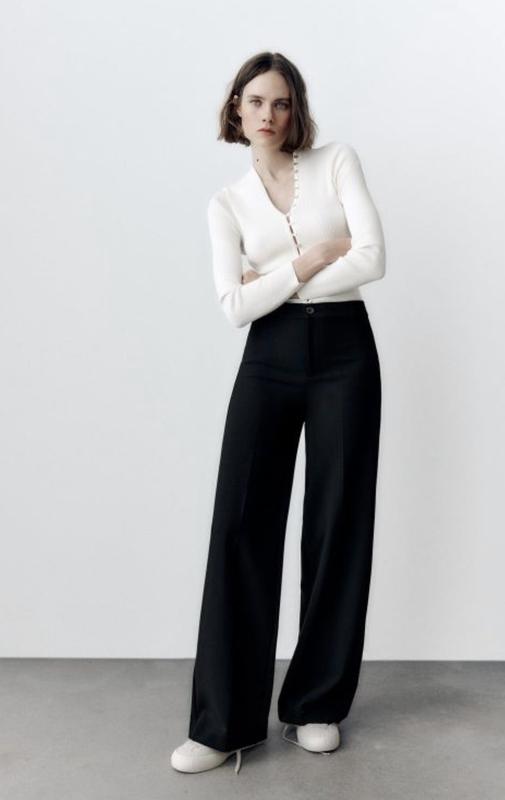 Брюки Zara Новые с биркой Состав 66 полиэстер 29 вискоза 5 эластан Размер S Длина 114, пот 35, поб 45 тянется 51, посадка 31/35, ширина штанины 28/29, шаговый шов 84 Размер М Длина 114, пот 37, поб 46 тянется 55, посадка 32/36, ширина штанины 30/30, шаговый шов 84 Размер L Длина 114, пот 41, поб 50 тянется 57, посадка 32/37, ширина штанины 31/32, шаговый шов 84