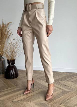 Штани мод.549 ор 📍производитель Украина ▫️ткань: матовая кожа на флисе ▫️размеры:, 48-50 ▫️цвет: беж пояс у комплекті. ⠀ Ждем на Ваши заказы!