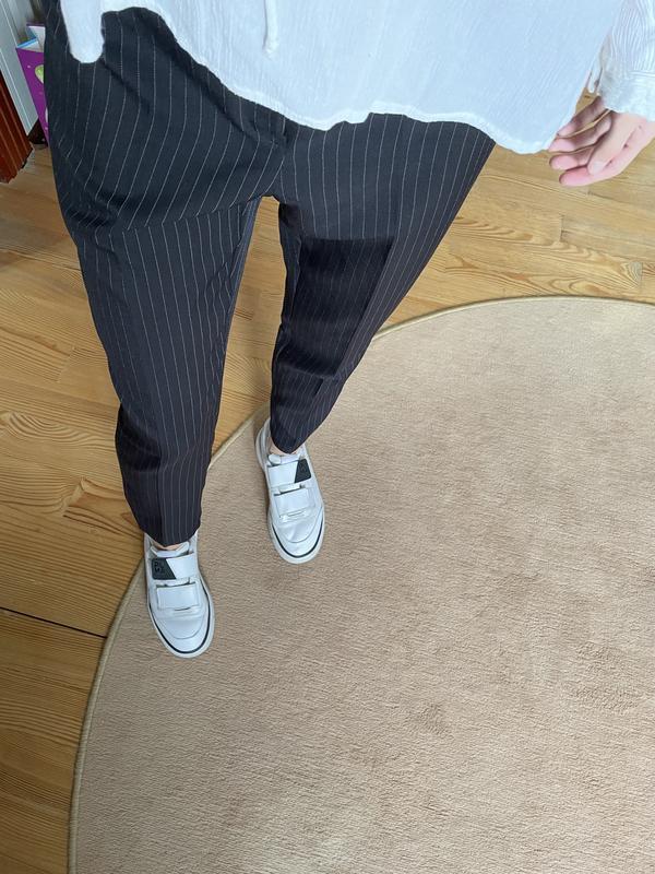 Классные брюки и принт тонкая полоска, темно синего цвета.