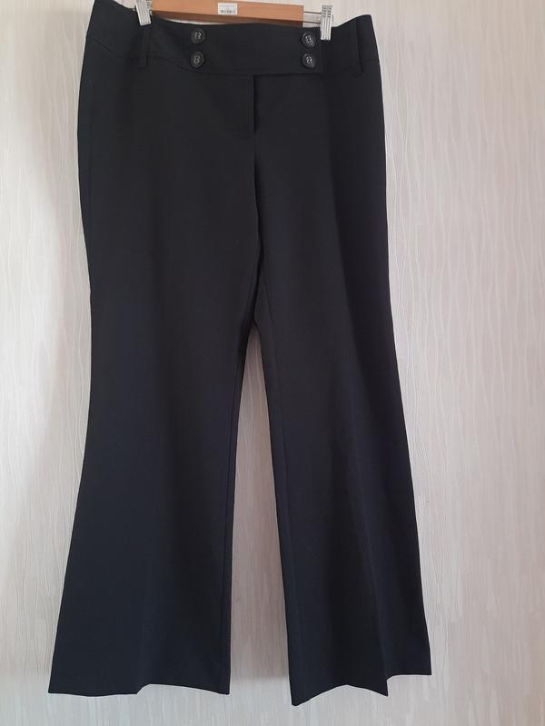 Продам классические брюки, небольшой клеш ПОТ 45 ПОБ 54 Длина 102/76 посадка 26/40, ширина штанины вверху 32 внизу 27. тканина поліестер, але не груба, не важка, не мнеться, типу габардину