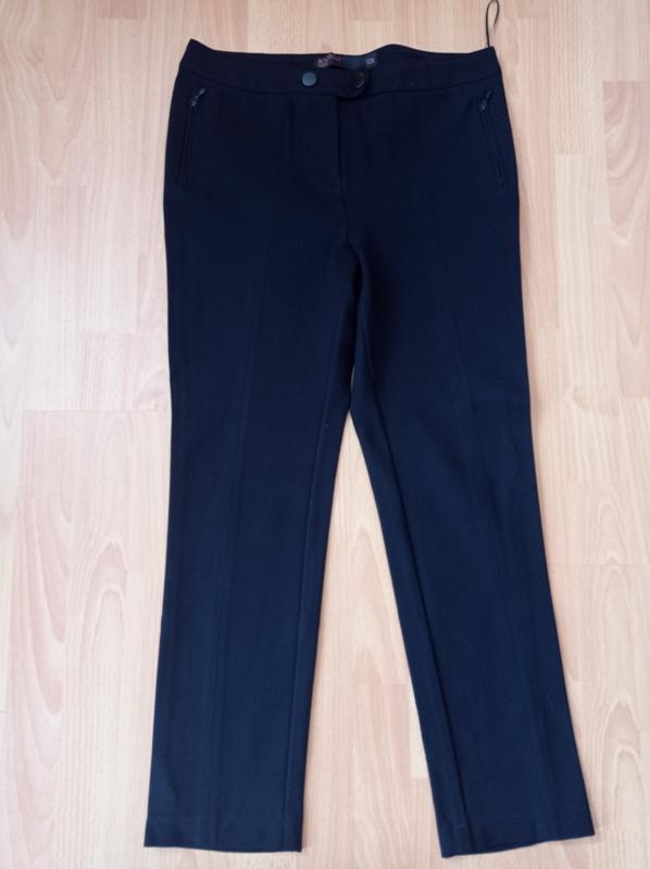 Черные брюки с прошитыми стрелками. Но канту, как такого, нет. Заміри на фото. Дополнительно тянутся