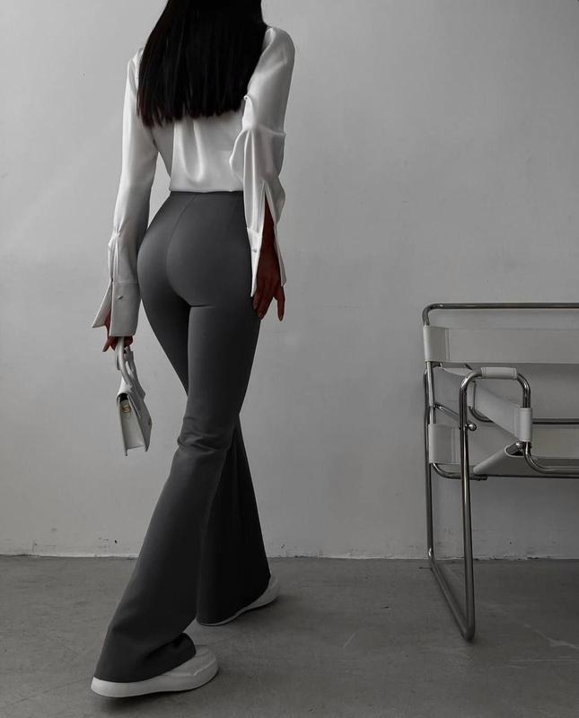 Брюки 🖇Мод 715 🧶Ткань: креп дайвинг 📐Размер: 42-44, 46-48 🎨Цвет: графит, черный ⠀ Брюки клеш в утяжеление, идеальной посадки На молнии и пуговице
