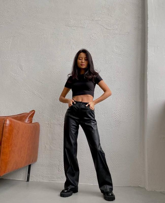 Арт 844-155 Кожаные брюки ◾️мод 155/2 (теплые) ◾️ткань: матовая эко кожа ◾️цвета: черный ◾️SM, ML Цена 420 грн (обычные) Цена 480 грн (теплые) Тренд этого сезона Очень стильная и универсальная вещь в гардеробе ; Сочетаются абсолютно со всем Брюки выполнены из матовой эко кожи, высокого качества. высокая посадка; Длина брюк 110 см Размеры SM ⁇ ML Талия: 60-68 см ⁇ 69-75 Стегна: 88-95 см | 96-100см