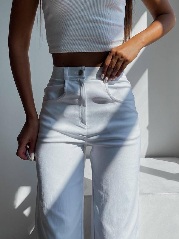 💥💥 новинка 💥💥 - всегда актуальны, брюки прямого кроя 🙌🏻 - незаменимы и классически 🙌🏻 - высока посадка - цена - 650 грн. - арт.176 - материал - джинсбенгалин; - размеры - 42-44, 44-46; - классические цвета - черный, белый; Приятные к телу, классно садятся по фигуре👌 Подчеркивают ваши формы ♥️ Материал тянется. Заказы 💌