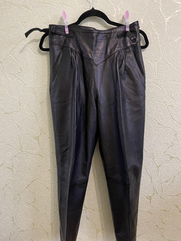 Класна шкіра, вінтажна модель яка чудово збереглася, цікавий фасон . Мають незначний дефект по лінії ягодиць, майстриня полагодить. Дуже мяка шкіра Заміри Пояс 36 см Бедра 53 см Висота посадки 37 см Довжина всієї штанини 100 від пахової зони до низу 64 см