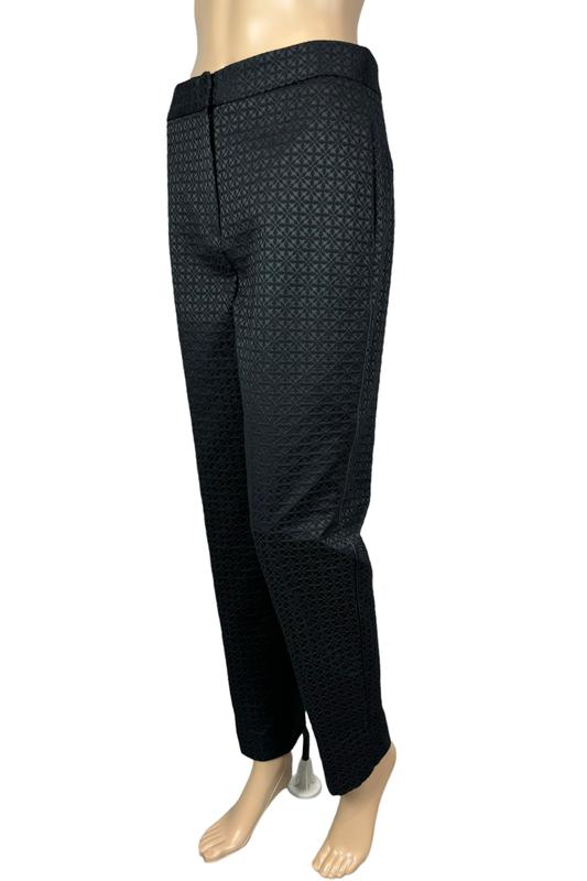Состояние Идеальное Плотные,фактурная ткань, немного тянутся Размер по бирке 38 Ширина по линии пояса-37-38 см ПОБ-50 см,немного тянутся Длина-99 см Шаг-73 см Высота посадки спереди-28,5 см Высота посадки сзади-34 см Ширина штанины сверху-29,5 см Ширина штанины внизу-16 см