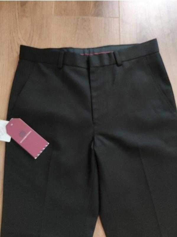 Хорошего качества ткань (не тянется) и пошива. Замеры: Полуобхват талии - 38см, Полуобхват бедер - 45см, Длина внутреннего шва 72см, Длина от талии - 103см, Ширина снизу 17.5см. Состав : viscose 35%, polyester 65% Размер М ( w30 L 31)