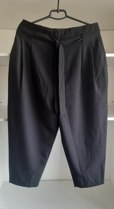 Укорочені брюки з високою посадкою. Мають бокові кармани та регулюються поясом. Довжина-90 ПОТ-41 ПОБ-57 Посадка-39/41