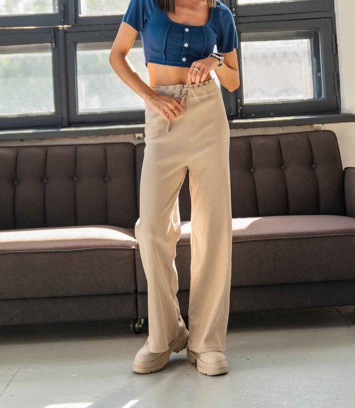 Брюки женские свободного кроя Размер М Материал: хлопок+ полиэстер Стирка не выше 40 градусов Длина -97 см Крок -66 см Посадка -32 см Пот-35 см(40+) резинка+ шнурок Поб-35,5 см(45+) Тканина еластична Замеры в спокойном состоянии