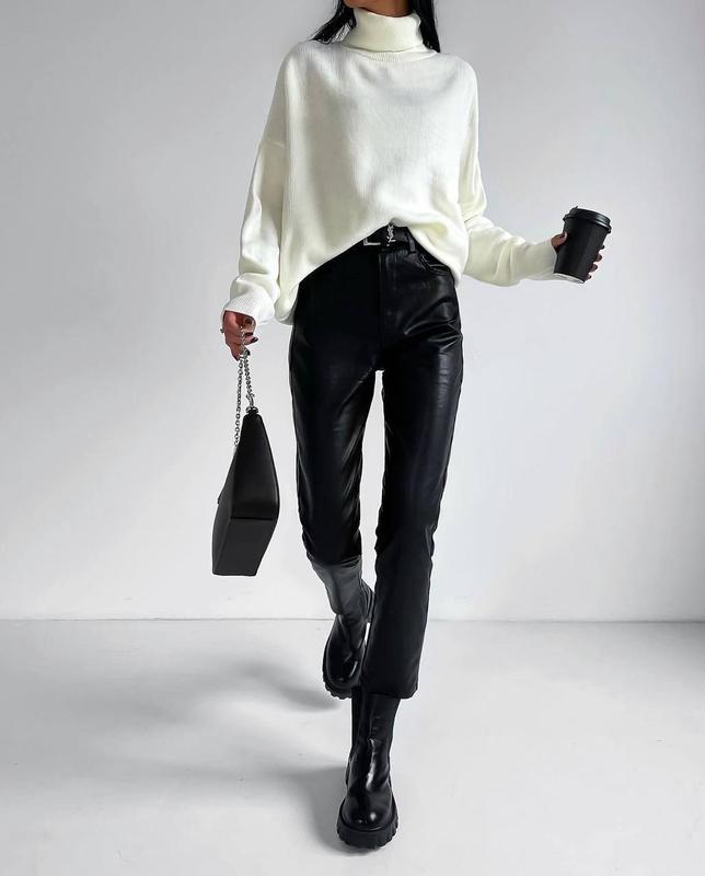 Укороченные брючки ➡️Мод. g 210 ➡️Размеры: 42-44, 44-46, 46-48 ➡️Ткани: екошкіра на флісі ➡️Цвет: черный ➡️Длина брюк 95см Первый размер ОС до 92см Второй размер ОС до 98см Третий размер ОС до 105см ‼️Лучшие цены, новинки, наличие