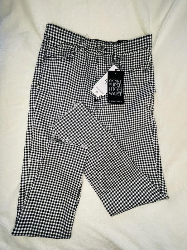 Скинни в клеткуStradivarius 🖤🤍 Стрейчевые, тянущиеся, высокая посадка. длина 97 см, длина по внутреннему шву 69, талия ПО 38 см, посадка спереди 30 см, сзади 35 см
