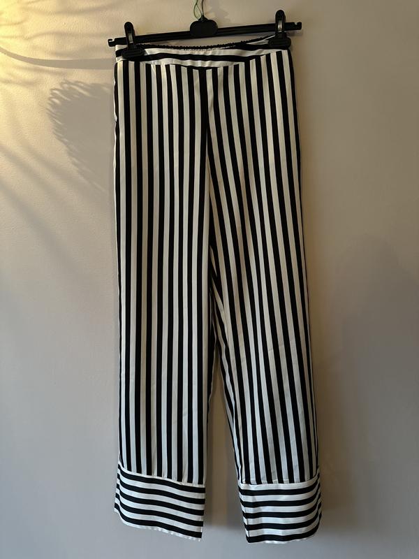 Брюки в полоску (черно-белая) Фасон: палацо Материал: атлас Размер:s