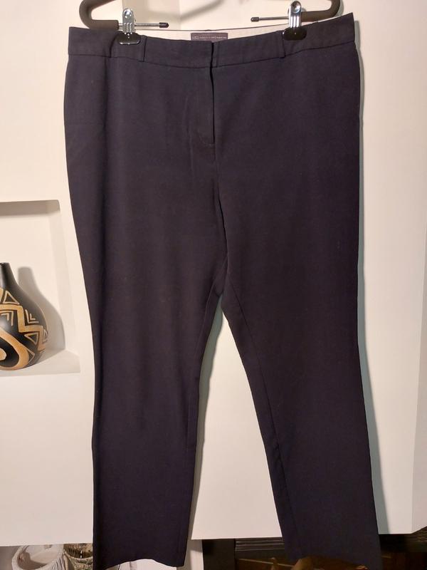 состояние идеальное известного бренда черного цвета 63% полиэстер 33% вискоза 4% эластан застегивается на молнию пуговицу и два крючка на поясе есть шлевки для ремня высокая посадка прямого кроя ткань немного тянется замеры пот 47 поб 59/65 посадка 31/44 длина 101 шаговый 77 низ по 20,5