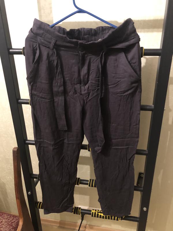 Напівохват талії 37, висота талії 32, довжина по зовнішньому шву 93, по внутрішньому 63. Висока талія. По бірці розмір m. Офігенні штани з віскози. Такий колір незрозумілий, темно фіолетовим віддає.