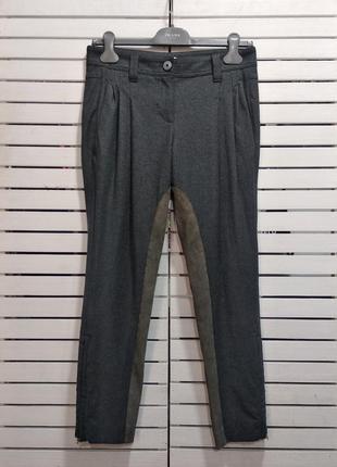 Size : 40 It ( S ) . - а поясе 38*2 - посадка 26/33 - бедра 45*2 - длина изделия 86 ( 62 шаговый ) 90% шерсть + 9% полиэстер + 1% эластан заужены к низу , внизу замочки , вставка из замши . По ткани все отлично ( не заказано и не затерто ) , замша как замша ( всегда ест. что найти )