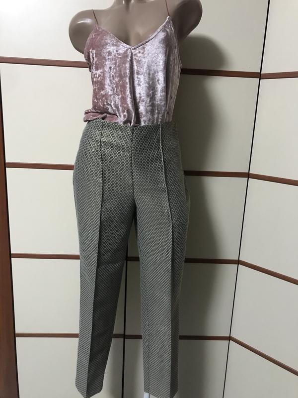 Очень красивые брюки с люрексовой нитью,размер М(указанный 10)длина 95см,пот 38см,поб 48см,сбоку замок.,высота посадки спереди 29 см,высота посадки сзади 39см,ширина штанины внизу 16см.