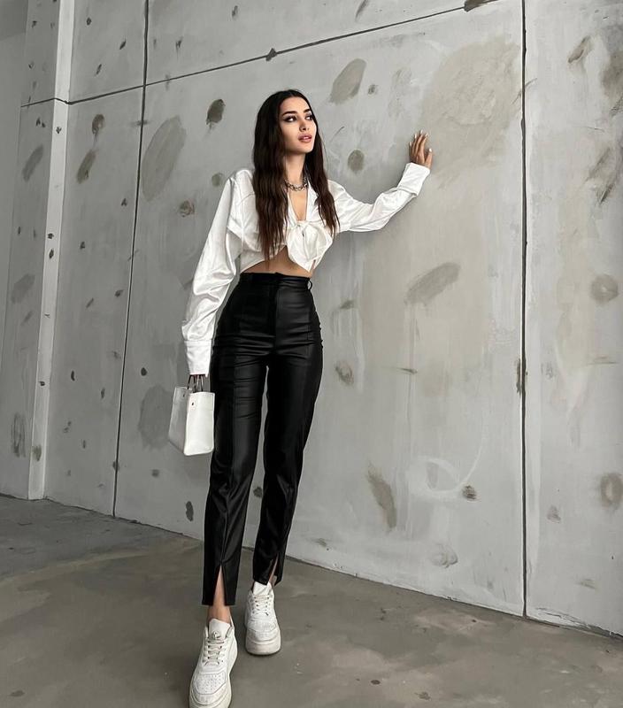 🥂НОВИНКА🥂 Брюки на флісі❄️ Модель: 062 Цена: 699 грн🏷 Пояс + 99 грн🏷 по желанию🥰 Размеры: 42-44; 46-48. Ткань: Эко-кожа на флисе (гарно тянется) Цвет: черный.